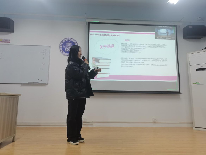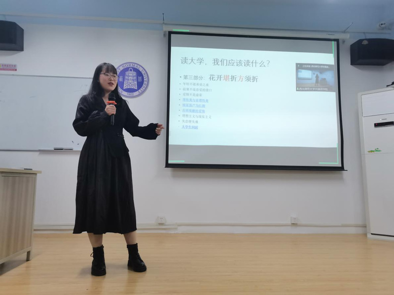 分享会第二环节,慢品“疫”书香。各班级代表就推荐图书《读大学,究竟读什么》分别从书籍的不同专题分享了自己的读后感悟。王嘉仪同学用“花开堪折‘方’须折”阐释了爱情与学习的关系,认为在大学恋爱中我们要做到理性美与非理性美的统一,分清孰轻孰重。张深悦则用歌声表达了自己对本书的理解,同学们在歌声的感染下,心绪更加清朗。随后,林凤娇老师结合同学们的发言,分享了自己对本书的理解,希望同学们在大学期间要尽早地给自己做好定位和规划,为自己将来的就业作好铺垫。