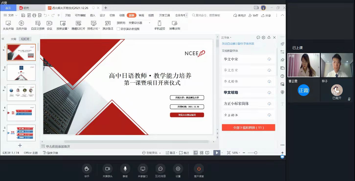 2021年12月26日,日语系联合湖南智见未来教育集团为日语系全体师生举办了以“高中日语教师教学能力培养”为主题的在线专题讲座。在讲座上,来资深中学日语教师刘俊老师、卢樊老师等四人为大家带来了“干货满满的”讲座内容。四位老师紧密联系高中日语教学第一线,就高考日语的时代背景、高中日语教学及考试内容、高中日语教学与大学日语教学的差异、高中日语教师面试及试讲的技巧及注意事项等问题进行了深入细致的讲解。通过本次讲座的举办,日语系的全体学生对于“高中日语教师”这一职业其工作内容和岗位要求有了更加清晰的认识和理解,为学生的职业生涯规划提供了更加清晰的思路。