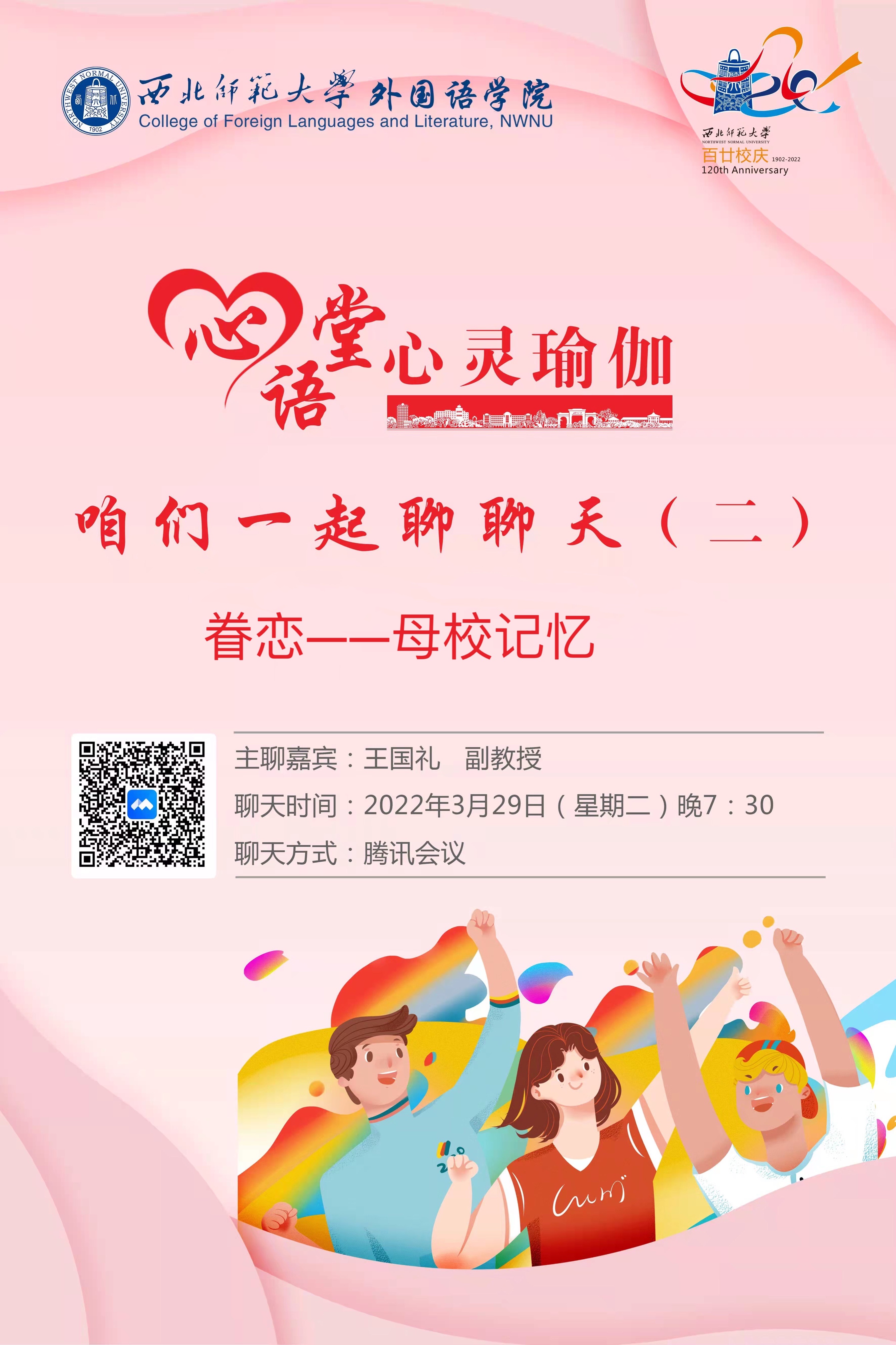 3月29日,yl6809永利“心语堂”心灵瑜伽——“咱们一起聊聊天”第二期“眷恋--母校记忆”如期而至,英语系主任王国礼副教授受邀担任本期主聊嘉宾,与自己的授业恩师、同班同学、往届毕业生以及在校本科生、研究生,一同重温20世纪末在师大的青春岁月。