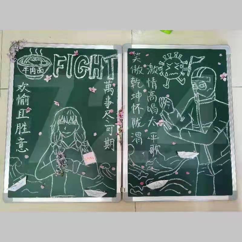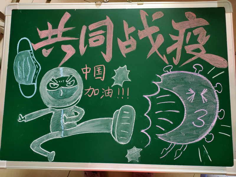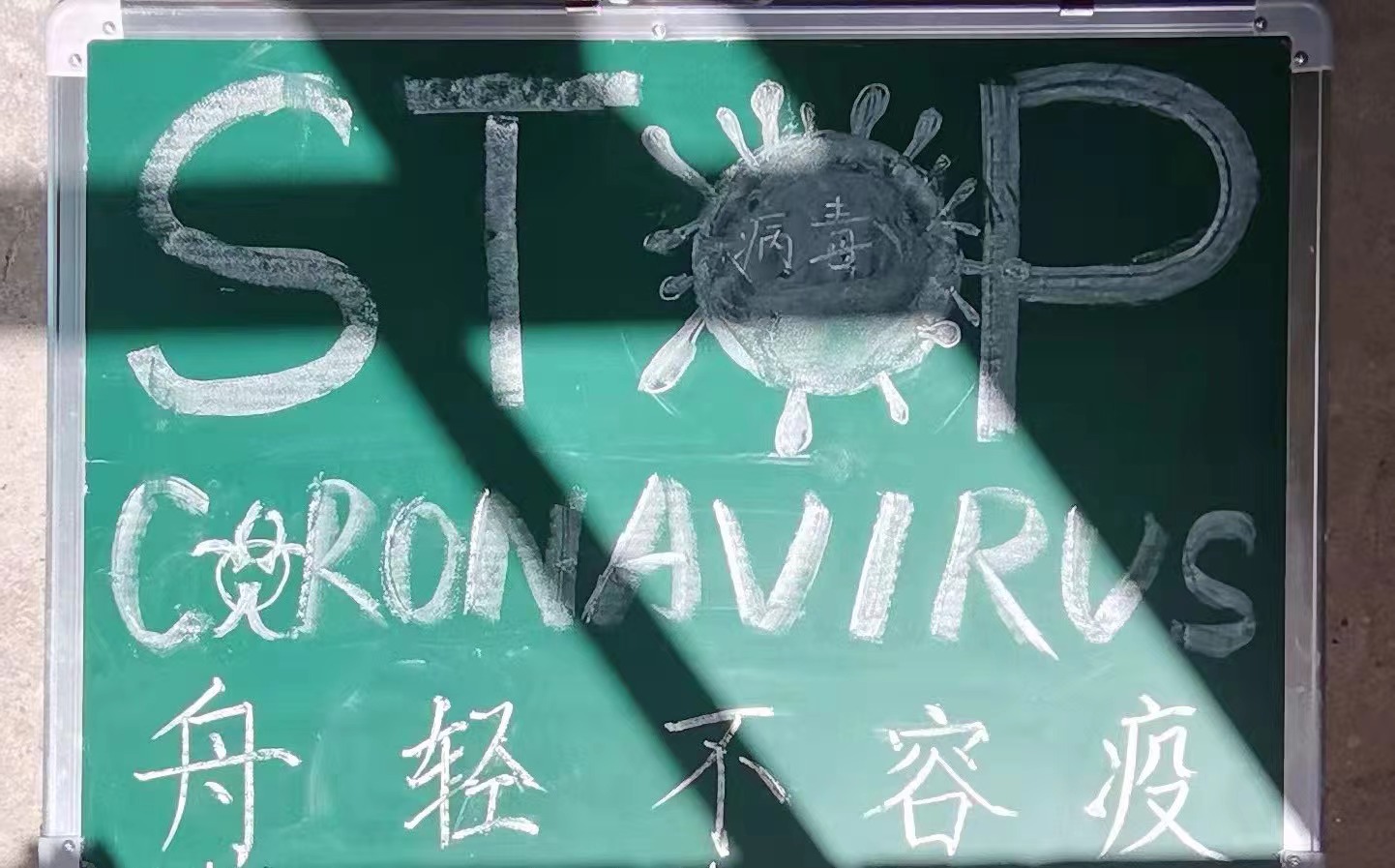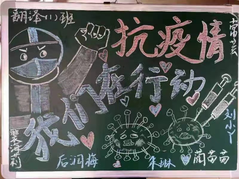 3月15日以来,学院师生严格遵守防疫纪律,认真开展在线教学及实践活动。课堂上,师生“云”端相见、频频互动,课堂外,师生互相关心、纾困解难,有力保障了教学效果和生活质量。防疫期间,英语系和翻译系的同学们积极创新,使用学院派发的小黑板练习板书技能,用粉笔勾画青春风采,抒发齐心抗疫的决心和青春战“疫”的信心。