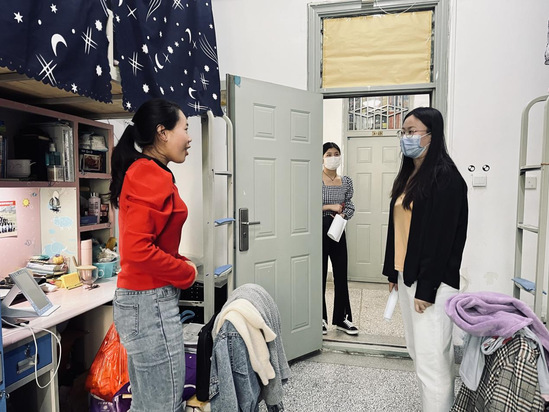 学院领导分组走访兰天公寓、党校学生公寓及知行校区学生公寓。走访过程中,学院领导及老师与同学们热切交谈,了解同学们节日前后生活状况,对学生日常安全、谨防网络电信诈骗等事宜做了具体强调。同时就疫情期间毕业生就业进行了详细的询问,鼓励同学们在毕业之际敢选择、多选择,保持乐观心态,积极就业。