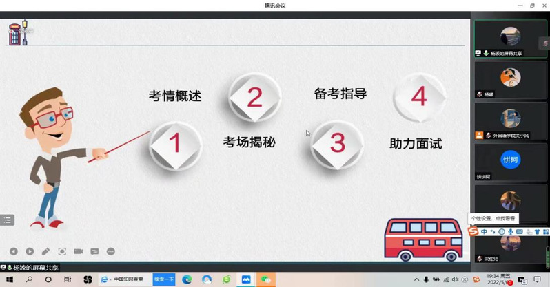 为帮助我院学子进一步了解教师编制公共招聘考试,提高求职能力,外国语学院于5月6日晚举办线上“指南针”求职能力提升工作坊第六期。本期邀请到中公教育教师招聘考试项目中级讲师杨波作题为“揭开面试之纱——面试的构成要素及考察趋势”的讲座,学院近200名师生聆听本次讲座。