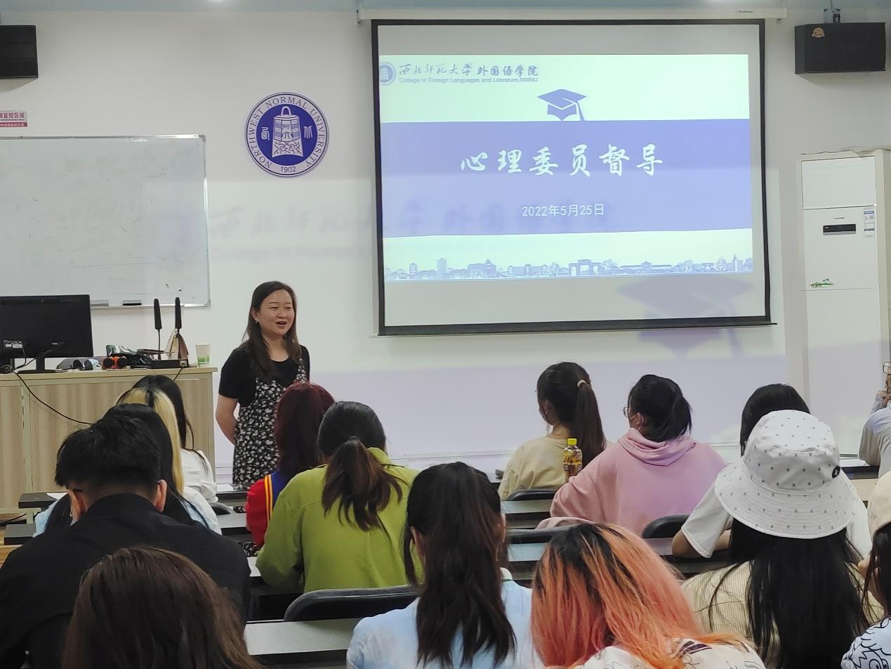 为了进一步加强大学生心理健康教育工作,提高班级心理委员工作能力,2022年5月25日,西北师范大学学生心理健康指导服务中心徐伊文婕老师在教学3号楼806室开展心理委员督导活动。