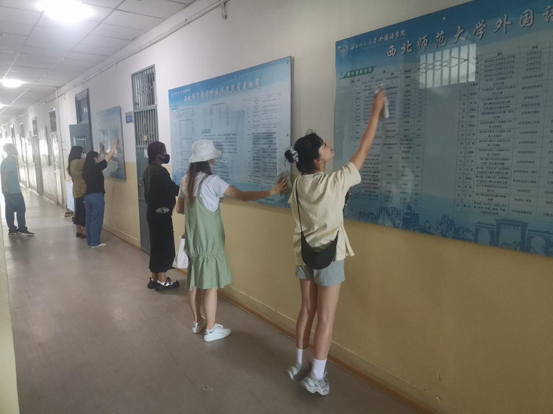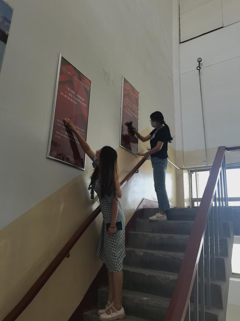 大四的毕业生们满怀热情,用实际行动美化了学院环境。他们分组合作,有组织、有效率地完成了此次劳动活动,包括清理活动展板、规整桌椅、清洁洗手台、擦镜子等;他们勇于奉献,全心全意地投入劳动,为大家创造了干净整洁的学习和生活环境;他们在劳动中挥洒汗水,收获劳动的快乐,为美化学院献出自己的力量。