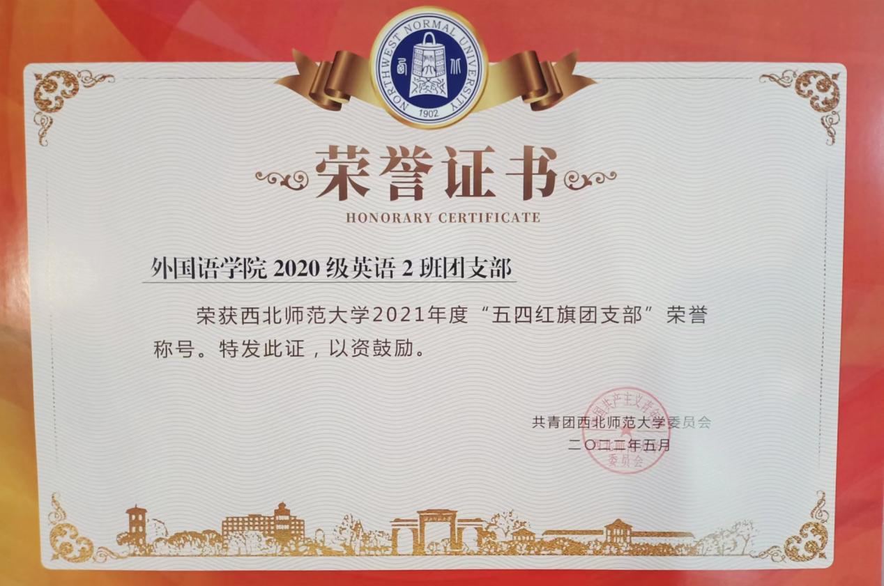 支部荣获西北师范大学2021年度“五四红旗团支部”