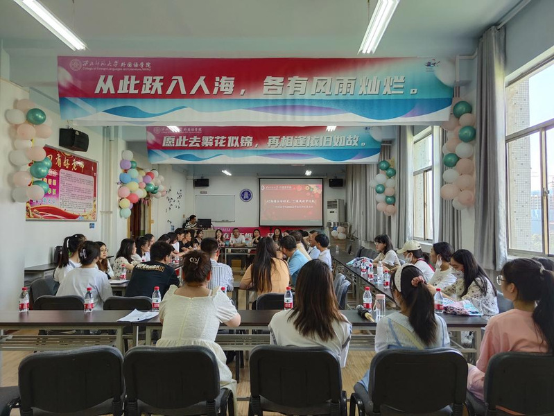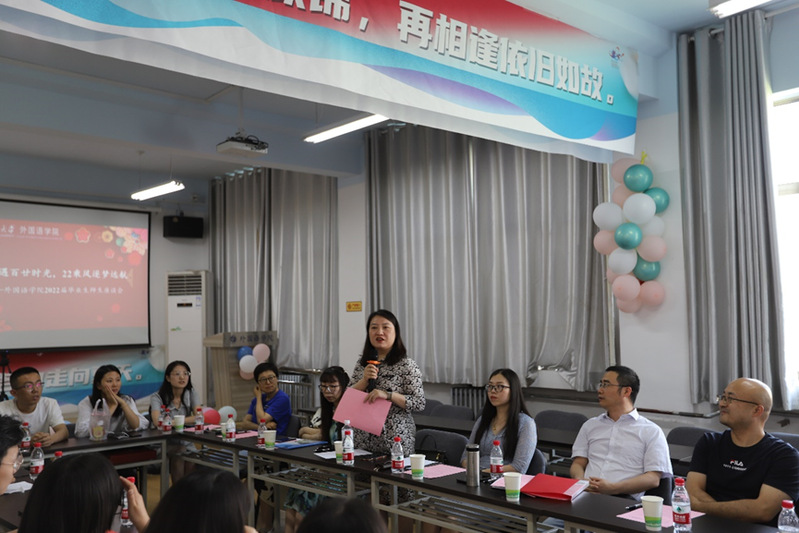 本科毕业生代表2018级翻译2班任芷君同学、硕士毕业生代表2019级外国语言文学及应用语言学李霖同学回忆了求学生涯中的点点滴滴,分享了成长的收获和感悟,表达了对学院的感恩之情。同时,线上参会的毕业生也通过线上连线的方式表达了对恩师的感谢、对母校的祝福。其他与会毕业生们更是表达了对学院及老师的深厚感情与不舍情谊,并对学院发展提出了建议。与会院领导对毕业生们的建议做了悉心回应,表示学院会竭力为学生提供更好的发展环境和更优质的教学服务。