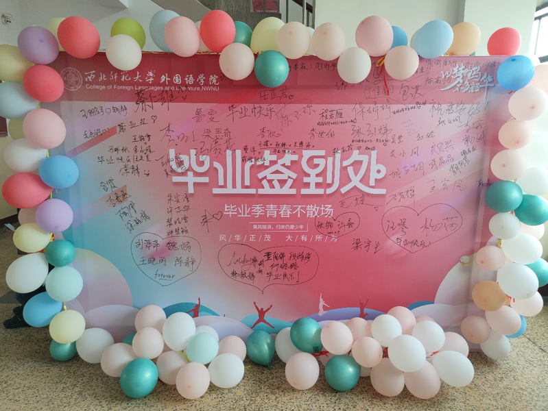 座谈会最后,学院播放了低年级学生对2022届毕业生的昔日关怀和榜样引领的祝福视频,祝愿毕业生们前程似锦,一路繁花。毕业生们通过贺卡和签名板的形式,书写了对母校的美好祝愿和依依不舍。