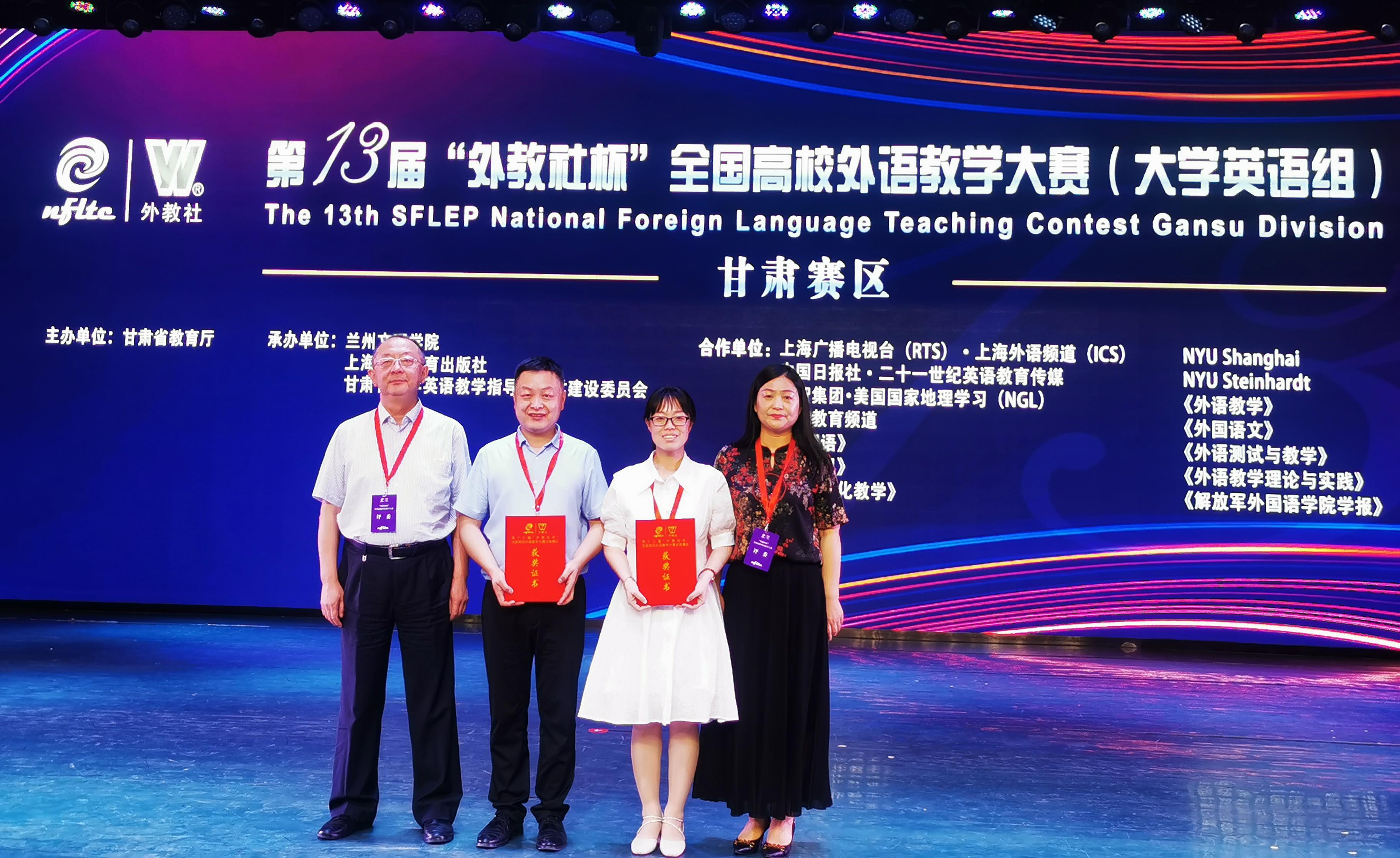 2022年7月2日至3日,第13届“外教社杯”全国高校外语教学大赛(大学英语组)甘肃赛区比赛在兰州文理学院举行。本次大赛设立“视听说”和“综合组”两个组别。我院选派大学英语教学部李辉和马艳红两位老师,分别参加两个组别的比赛。经过激烈角逐,李辉老师荣获“视听说”组一等奖,马艳红荣获“综合组”三等奖。