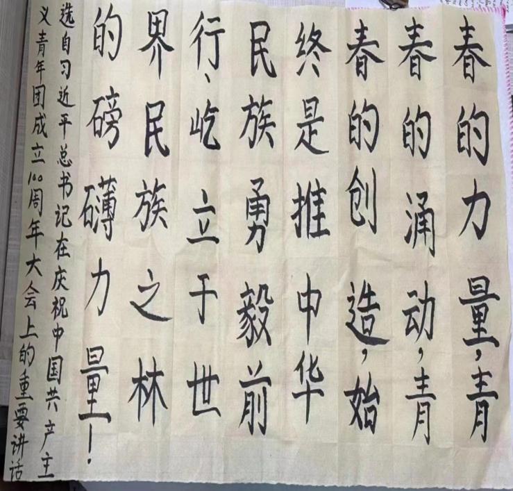 全系同学积参与活动,展现了对汉字的热爱,一笔一划书写出了对中华民族五千年灿烂文化的继承和发展。活动共收到本科生和研究生的软硬书法作品30余件。其中,2019级梁晋瑜、2021级李梦瑶、2020级马米娜、2021级余文强的作品被评为本科生组软笔字组最佳,刘思琳作品为研究生组最佳。本科生组最佳硬笔书法作品奖获得者为2020级肖息露、刘雪莉、何雨雨、后玲玲、孙冬梅、韩欣怡、王李悦和2021级李梦瑶,研究生组为马小静。