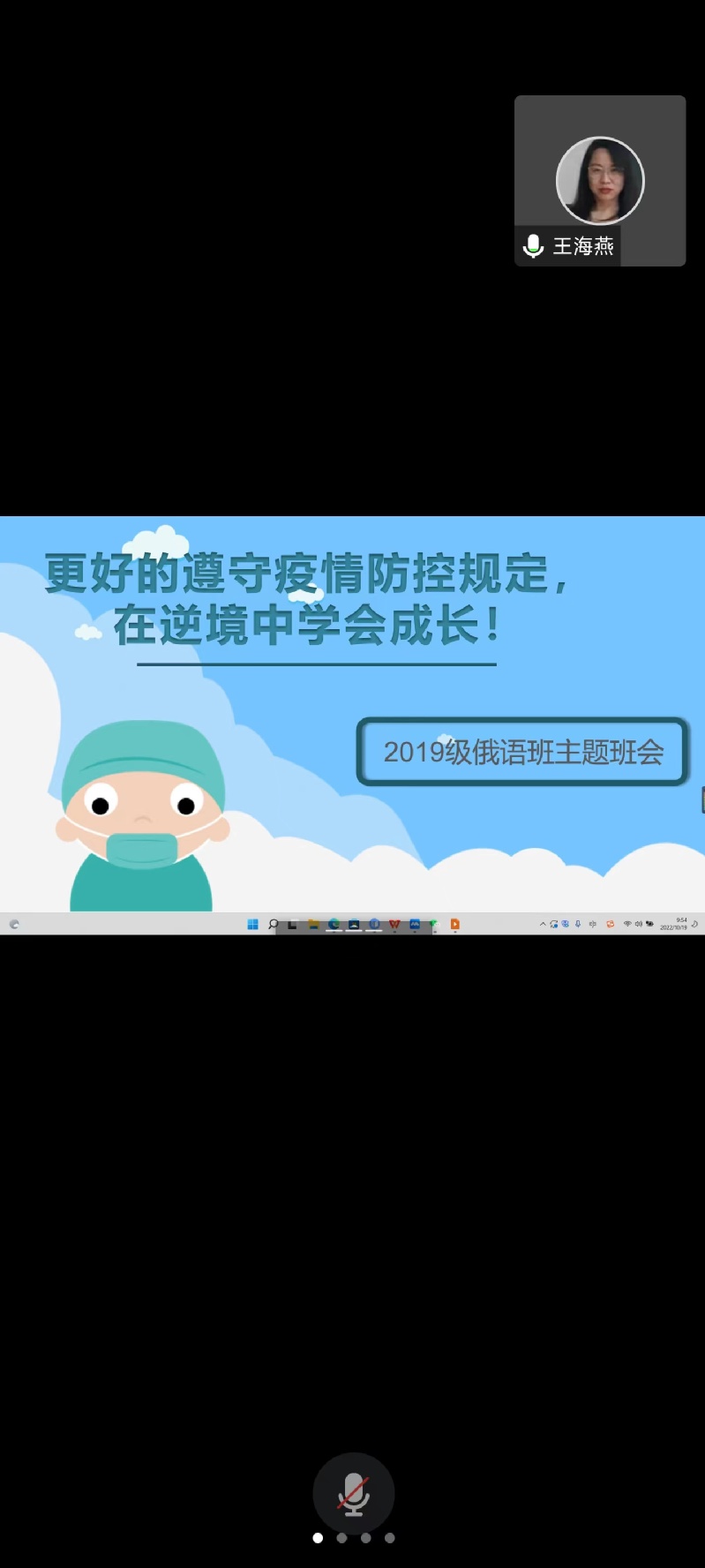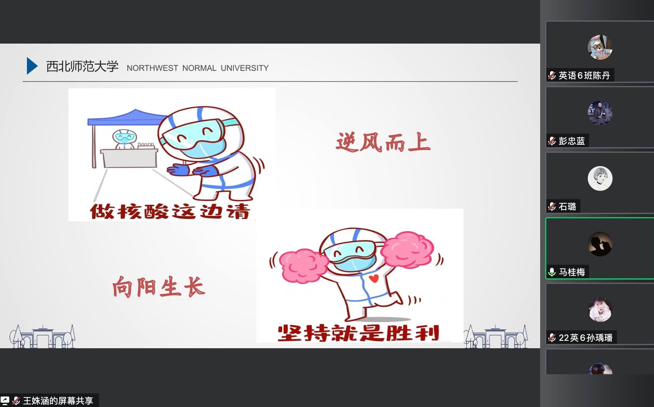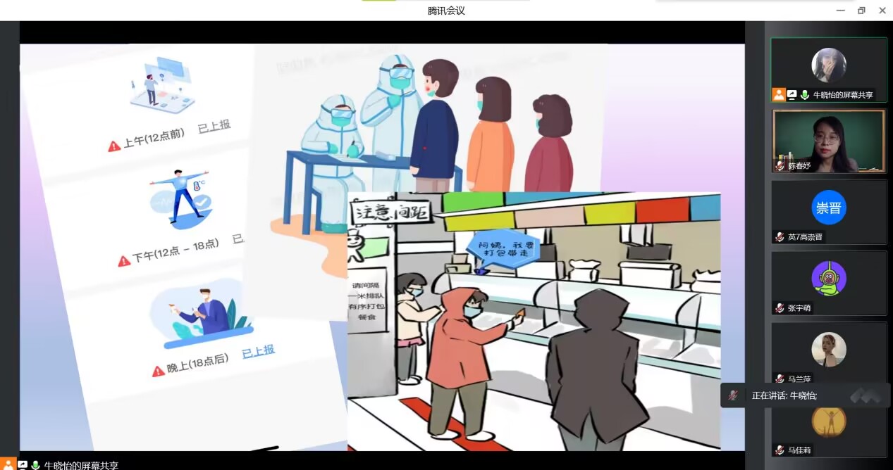 各班级聚焦抗疫期间的心理调适、如何看待网络舆论、如何合理安排学习生活、如何做好疫情防控等内容,通过经验分享、诗朗诵、歌曲演唱、趣味赋能等形式展开,主题突出、内容丰富。老师们现身说法,结合自己在工作、生活、学习中的实际经验,鼓励同学们要克服困难、积极向上、遵守规定,让同学们感受到老师们和同学们身处同样的环境,也在和同学们一起并肩战斗并时刻牵挂着同学们。