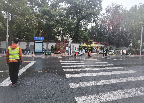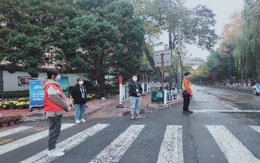 冬日的脚步日益临近,清晨6点的金城寒气凛冽,但志愿者们依旧身着红马甲、警示衣叮嘱同学们礼让来往车辆,引导同学们井然有序地出入校园和公寓,保障同学们的出行安全,用一抹亮丽的红色为同学们筑牢公寓到学校之间的平安之路。