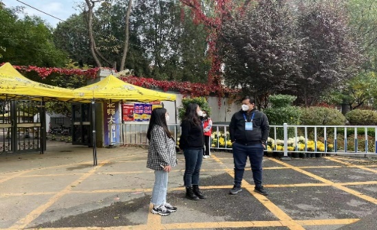 为落实学校疫情防控政策,织密防疫安全网,10月27日,yl6809永利“蒲公英”应急语言服务团组织15名青年志愿者在校本部南门至党校学生公寓路段开展疫情防控值班工作。