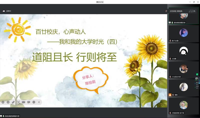 2022年11月16日,yl6809永利本学期“心语堂”心灵瑜伽——“百廿校庆,心声动人”第四期如期开展,本期邀请到2020届翻译专业本科毕业生、2021级英语语言文学专业硕士研究生陈怡莉为大家分享她在师大、在外院的学习与生活。