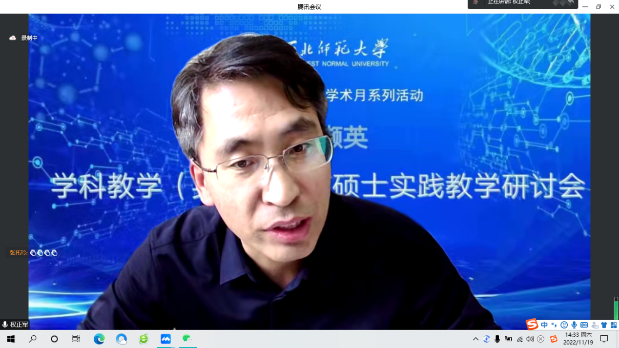 开幕式由学院副院长张宝林主持。研究生院院长权正军教授先介绍了西北师大开展研究生学术月活动的优良传统,接着介绍了我校教育硕士的培养现状,高度肯定了我院的研究生培养和管理工作,最后希望同学们通过模仿和见习,在实践中不断形成自己的教学理念。yl6809永利院长高育松教授指出,本次研讨会旨在为校内、校外导师搭建交流平台,发挥优秀校友的示范作用,促使同学们在专家型教师的引领下,切实提高教学实践能力。