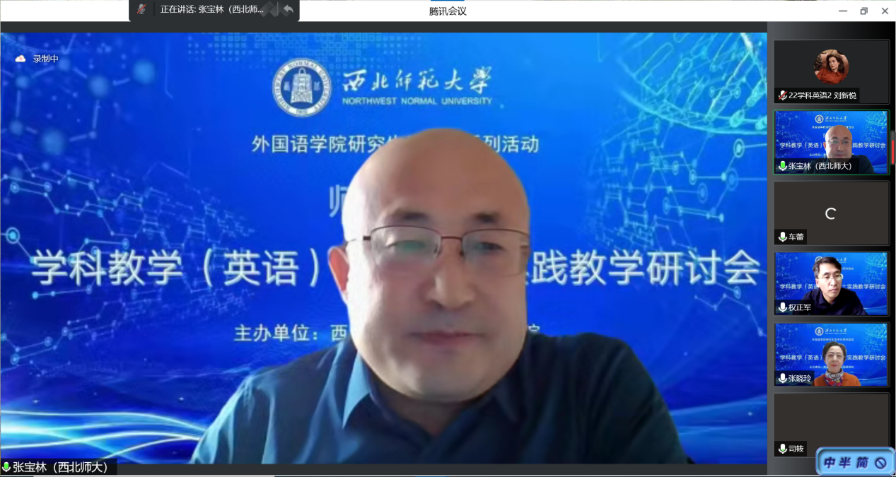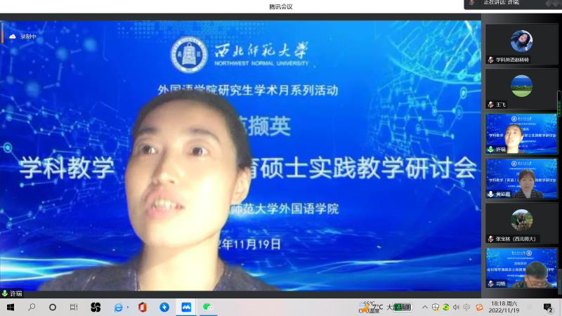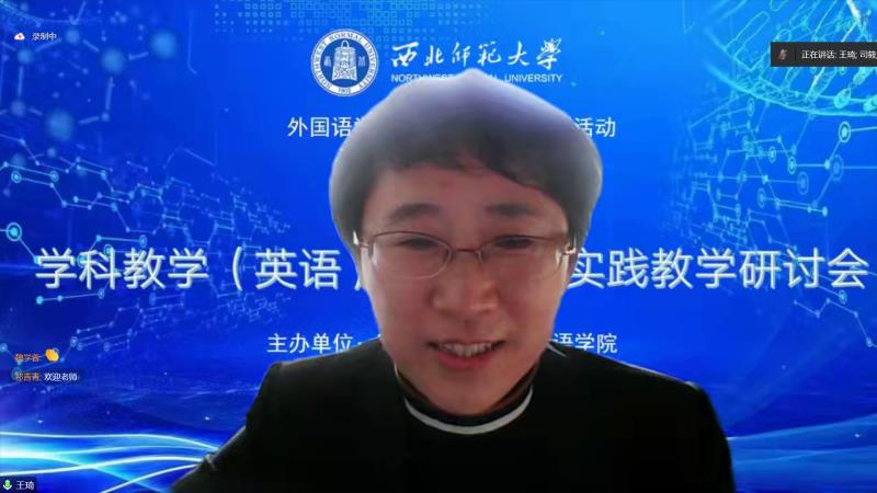 兰州新舟中学正高级英语教师司筱以“在听课中学习,在评课中提升”为题,从为何听、听谁的、如何听、怎样评四个方面进行了分享,指出教师可以通过听评课从而达到自我提升。司老师鼓励同学们多从听课中反思,多从实践中提升。本场主旨发言由王琦教授主持。