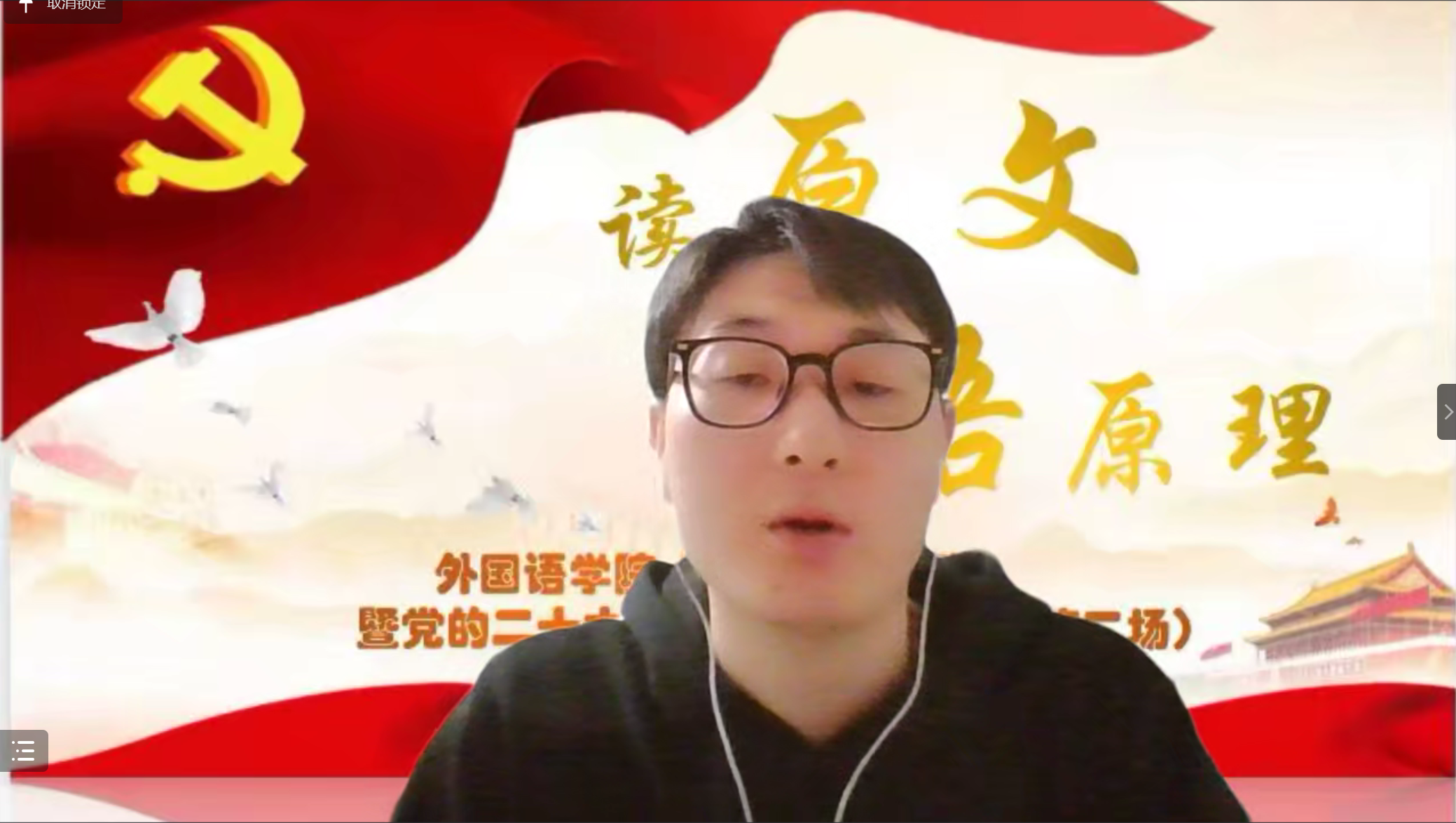 林平、杨谨双语示范诵读后,宁老师从外语专业学习角度对译文进行了详细的分析和讲解,希望同学们注重专有词汇、主题句及时态的学习理解,在双语诵读和翻译研习中深刻领会党的二十大精神。