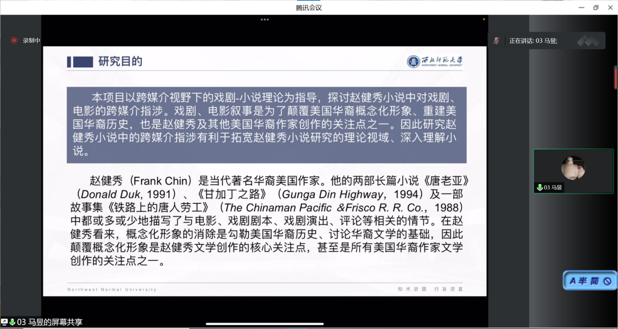 11 | 马昱 | 2021211612 | 英语语言文学 | 学硕 | 赵健秀小说中的跨媒介指涉研究 |