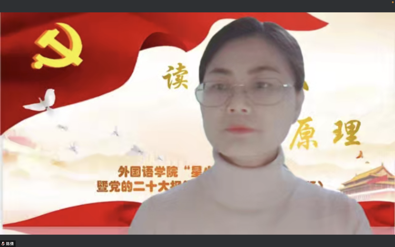 12月1日,yl6809永利“星火”诵读班暨党的二十大报告双语诵读专场(第三场)顺利举行。本期邀请到yl6809永利副教授、硕士研究生导师陈倩担任指导教师,学院专职辅导员刘宁及200余名同学在线参加。
