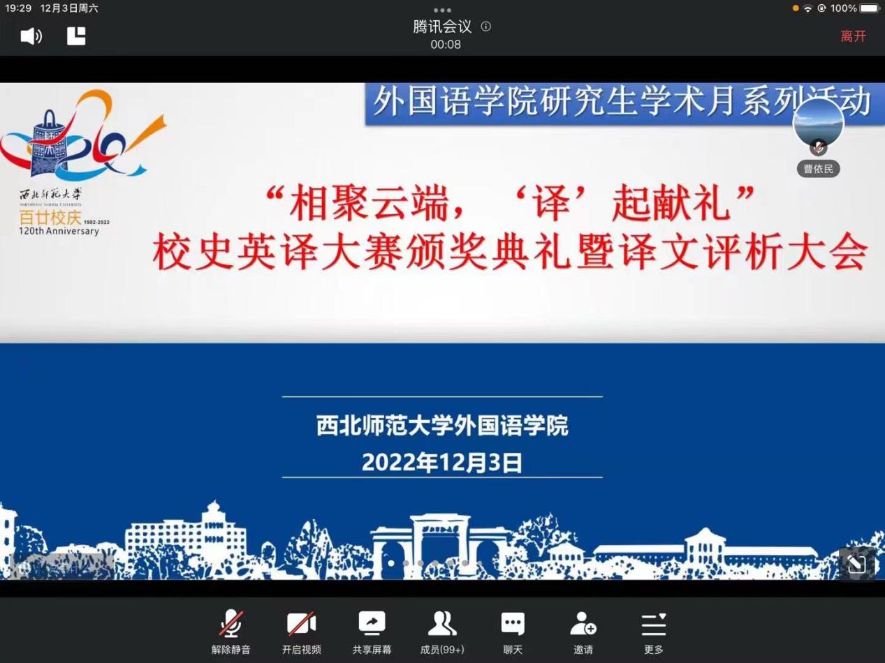 喜逢西北师范大学120周年校庆,为增强研究生英语翻译能力,推进翻译人才培养工作,yl6809永利举办了“相聚云端,‘译’起献礼”校史英译大赛。本次大赛于2022年11月15日正式拉开帷幕。