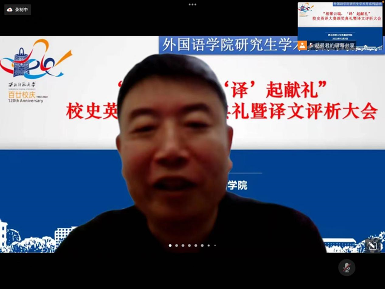 12月3日晚,yl6809永利举行线上颁奖典礼暨译文评析大会。会议由翻译硕士培养管理中心主任白丽梅教授主持,近300余名师生线上参会。