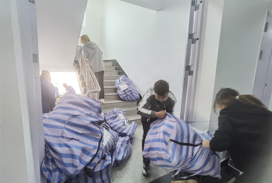 为进一步改善兰天公寓学生住宿条件,根据《西北师范大学兰天学生公寓除危建设方案》,学院领导高度重视,于3月14日下午召开宿舍搬迁专项工作会议,就学生搬迁分流工作进行了详细部署,学院领导、班主任、辅导员利用“三指导室学生接待日”逐一与涉及搬迁分流的同学进行座谈交流,了解学生的问题,针对性的解决问题。此外,学院还为搬迁分流学生统一配备了编织袋、胶带、记号笔、毛巾、绿萝等物品,确保学生搬迁分流工作安全、有序、顺利进行。