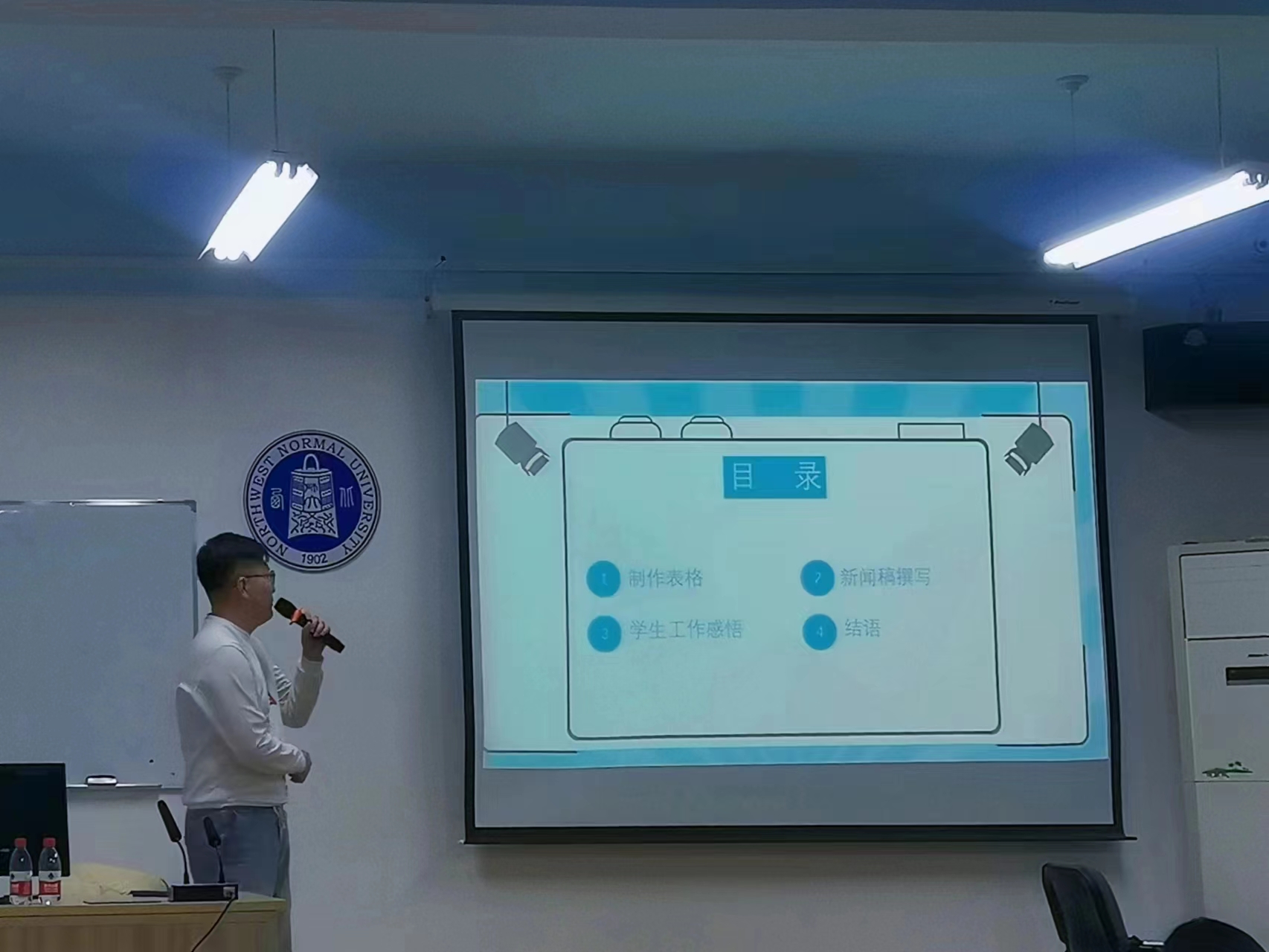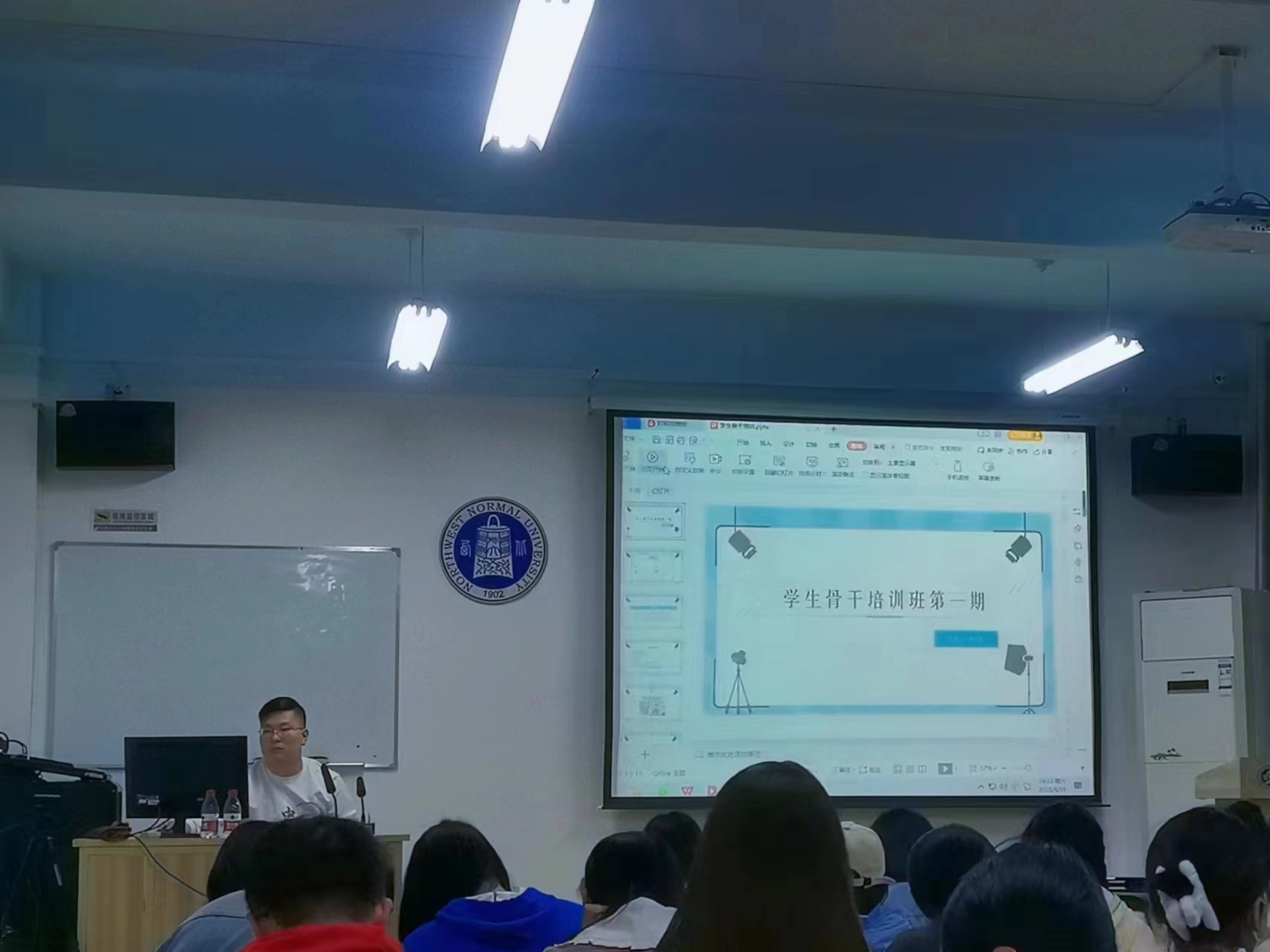 培训伊始,主讲人梁宇生对表格定义作出解释,并通过现场演示,详细讲解如何制作规范表格。随后,分别从新闻的概念、特点及格式对新闻稿的撰写进行讲述并结合自身经历,分享担任学生干部的感悟与心得,并强调要做好一名学生干部,必须具备诚实、认真、坚韧等品质,脚踏实地,端正工作态度,做好份内之事。