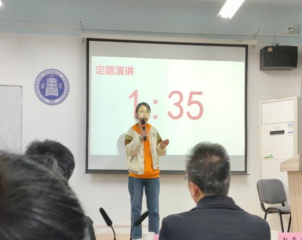 比赛结束后,曹依民老师作为评委代表对比赛进行了点评。曹老师指出,演讲应注重两个方面。一方面,参赛选手应选择合适的切入点对主题进行深层次的思考,避免宏大的概念,使演讲内容有所聚焦,由浅入深,让演讲更具逻辑性。另一方面,在演讲过程中,参赛选手应注重演讲礼仪和演讲技巧,使演讲更具吸引力。点评最后,曹老师对选手们表示了热切的期望,也希望有更多优秀的同学加入到演讲比赛中来。