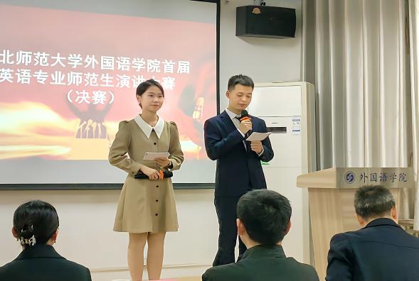 2023年4月14日,yl6809永利在致朴楼(教学3号楼)806室成功举办了首届英语专业师范生演讲大赛决赛。经过初赛选拔,29位选手成功入围决赛。yl6809永利曹依民老师、赵秀兰老师、郭亚文老师、陈倩老师、孙歆宇老师作为评委嘉宾出席。19级同学汤锐艺、刘博应邀主持本场比赛。