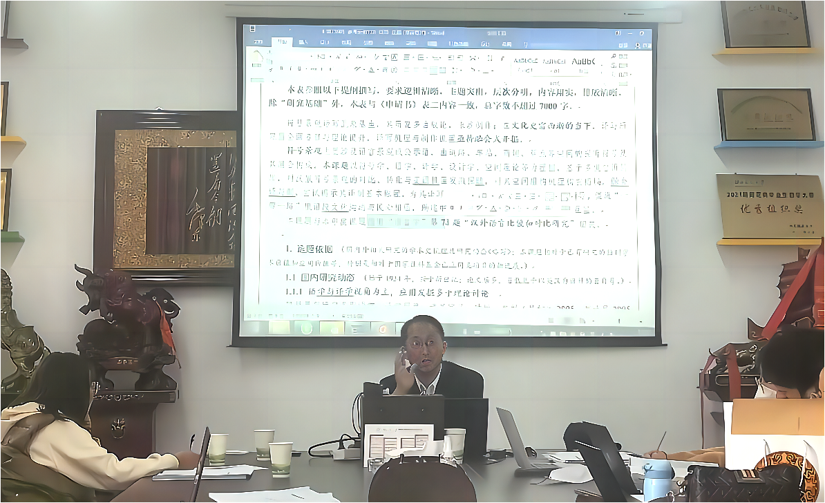 论证会上,我院教师路春燕、赵慧杰、张耀公、党莉莉、蒋贤萍、陈惠毓、马煜贤、蒋智妍、丁继光等教师分别就各自的申报课题作了简要汇报,黄忠廉教授围绕申报书的题目凝练、逻辑结构、论证方式等细节,进行了详细分析和精心指导,提出了宝贵的修改建议。