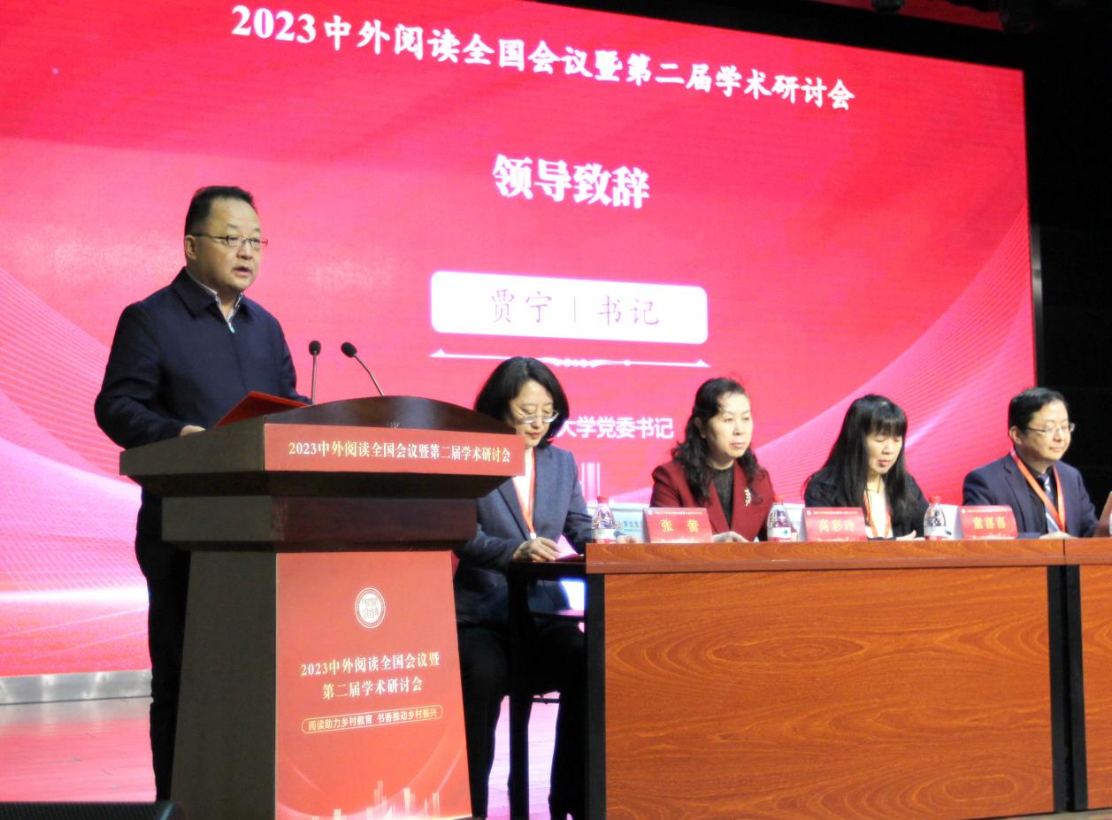 接着,西北师范大学党委书记贾宁发表致辞。贾宁代表西北师范大学向各位专家学者和朋友们表示热烈的欢迎。贾宁表示,近年来,甘肃省教育系统高度重视中小学图书室建设和学生阅读工作,不断完善相关制度政策,深入推进农村中小学书香校园建设。西北师范大学也积极服务西部地区农村和民族地区基础教育,并为此做了大量工作,有力促进了甘肃农村、民族地区儿童阅读事业稳步发展。