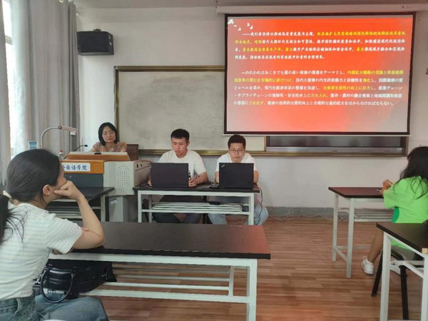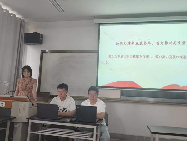 诵读活动在学院专职辅导员刘宁老师的主持下开始。首先两位领读人2019级日语专业本科生贾隆煜、梁宇生分别对党的二十大报告选段进行了中日双语诵读,李瑶老师以日本文学发展史为开篇,并以此为引,带领同学们学习了党的二十大报告中一些重点形容词、副词和动词的翻译方法,让同学们有机会从自身专业的角度学习领会党的二十大精神。