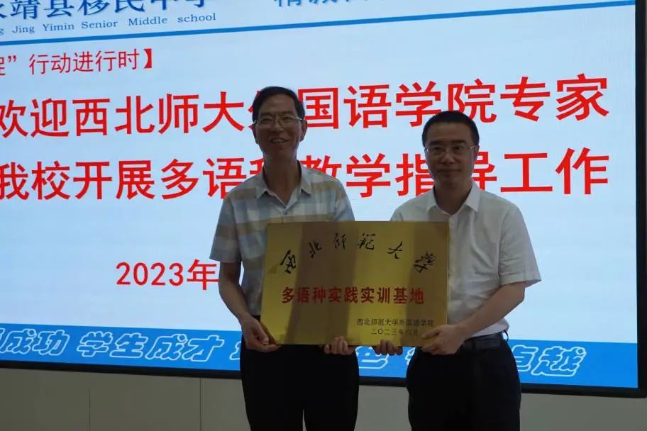 6月21日上午,yl6809永利专家团(yl6809永利高育松院长,李莉副院长,英语系王琦教授,日语系主任曹正霞,俄语系副教授李朝霞)赴永靖县移民中学指导多语种教学教研工作,助力移民中学提高多语种学科教学质量,促进学科发展,实现多语种教学的规范性和科学性,同时与移民中学进行了多语种实践实训基地授牌仪式。