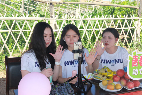 实践中,团队成员依托新媒体平台兴农助旅,通过团队成员在校期间创办的“甘肃清悦声电子商务有限公司”和学生创新创业团队,开展青年公益“助农直播”,采取“短视频+直播”的推介方式助力销售临泽本地农特产品,同时大力推介临泽旅游资源,推动当地经济发展。