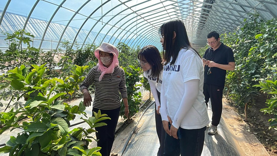实践活动中,团队成员结合当地特色开展实地走访调研活动,其中,乡村振兴调研小组前往板桥镇新品种林果实验示范区,寒旱高质高效设施葡萄产业园以及万头肉牛养殖产业园等地开展实地调研。高质量住房和生态避险调研小组前往板桥镇高质量住房和生态避险建设示范点进行实地走访调研。旅游推介小组就板桥镇“六大名片”旅游点开展宣传推介工作。生态产业调研小组围绕板桥镇特色葡萄产业、畜牧业以及生态保护举措等开展调研工作。