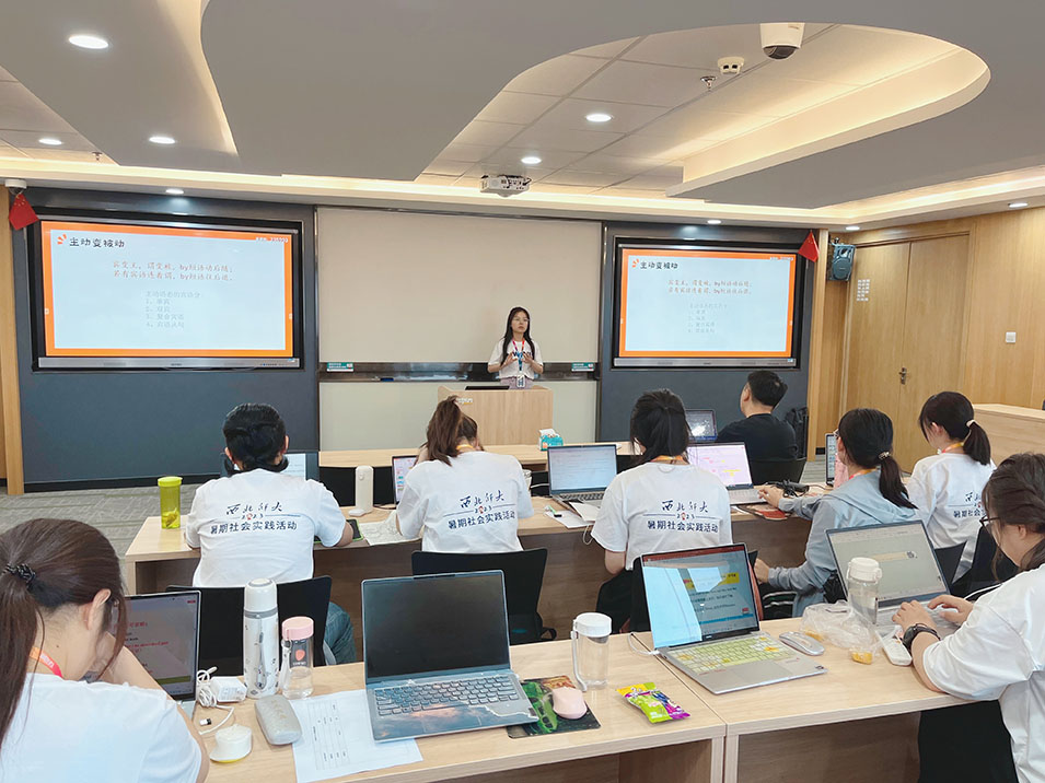 社会实践过程中,队员们通过线上、线下课程的学习,了解了有关简历制作、面试技巧、职场沟通及个人职业规划等方面的知识,学习了新东方优秀教师分享的职场经验,同时,以小组为单位观摩了各校区少儿部及初高中的相关课程,并对教师的课堂活动与学生的反应做出观察与评估。除此之外,新东方兰州学校的优秀教师们为队员们实地讲解了关于教师职业素养和技能方面的知识,从课件制作、教案书写到课堂互动、课堂管理,从课堂的旁观者到课堂的引导者,队员们深刻了解和学习了成为一名优秀的教师需要具备的各种条件和能力。