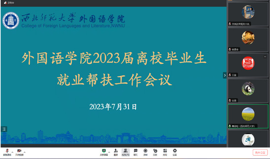 为进一步做好2023届离校毕业生就业工作,7月31日晚,学院召开了2023届离校毕业生就业帮扶工作会议,学院班子成员及“就业责任田”负责教师线上参会。会议由学院党委副书记安燕主持。
