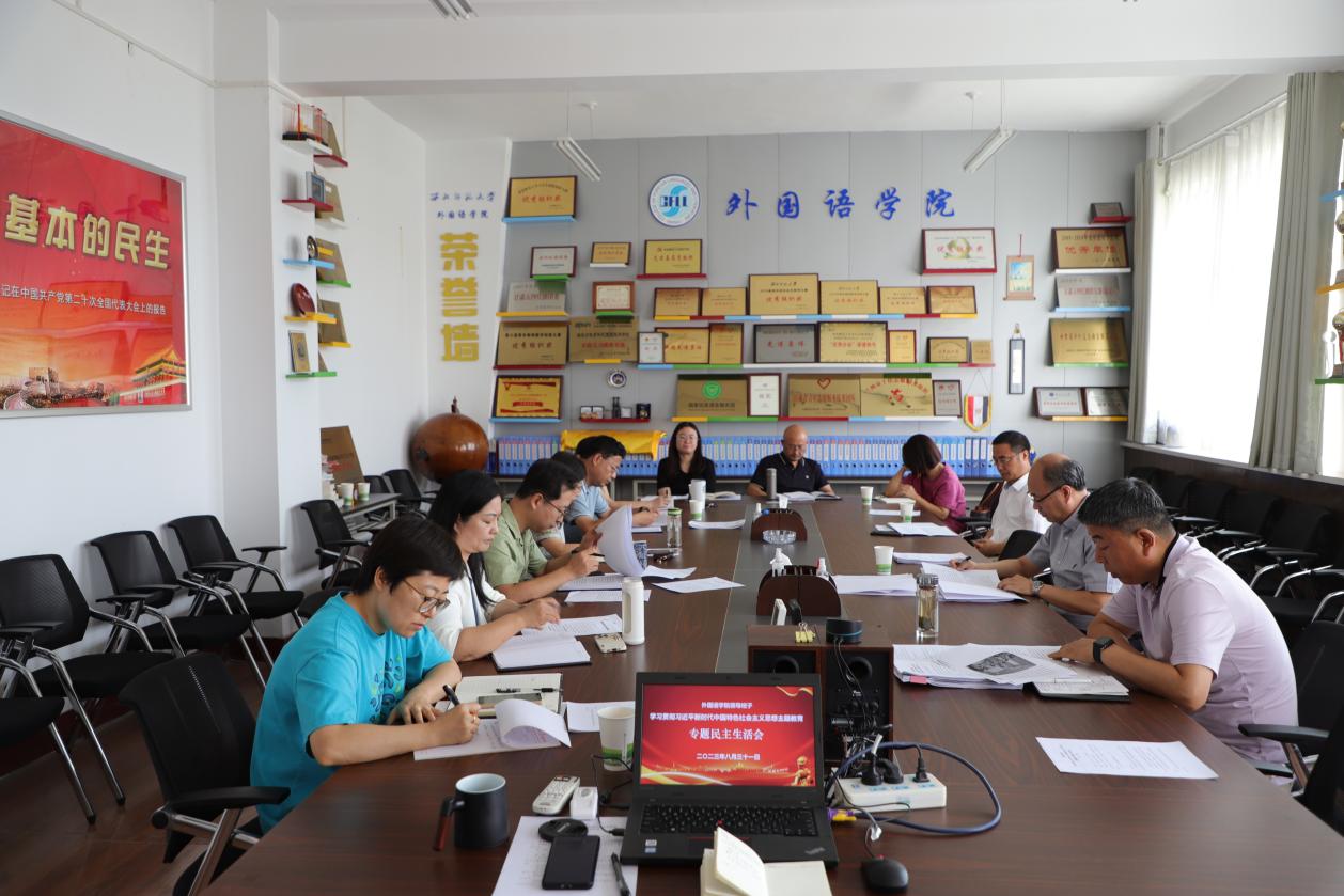 按照学校党委统一安排,8月31日,外国语学院党委召开学习贯彻习近平新时代中国特色社会主义思想主题教育专题民主生活会,班子成员围绕学思想、强党性、重实践、建新功总要求,对照凝心铸魂筑牢根本、锤炼品格强化忠诚、实干担当促进发展、践行宗旨为民造福、廉洁奉公树立新风的具体目标,深入学习领悟习近平总书记以学铸魂、以学增智、以学正风、以学促干重要论述的丰富内涵和实践要求,检视差距不足,开展党性分析,着力从思想根源上解决问题,着力增强坚定捍卫“两个确立”,坚决做到“两个维护”的政治自觉和思想自觉。