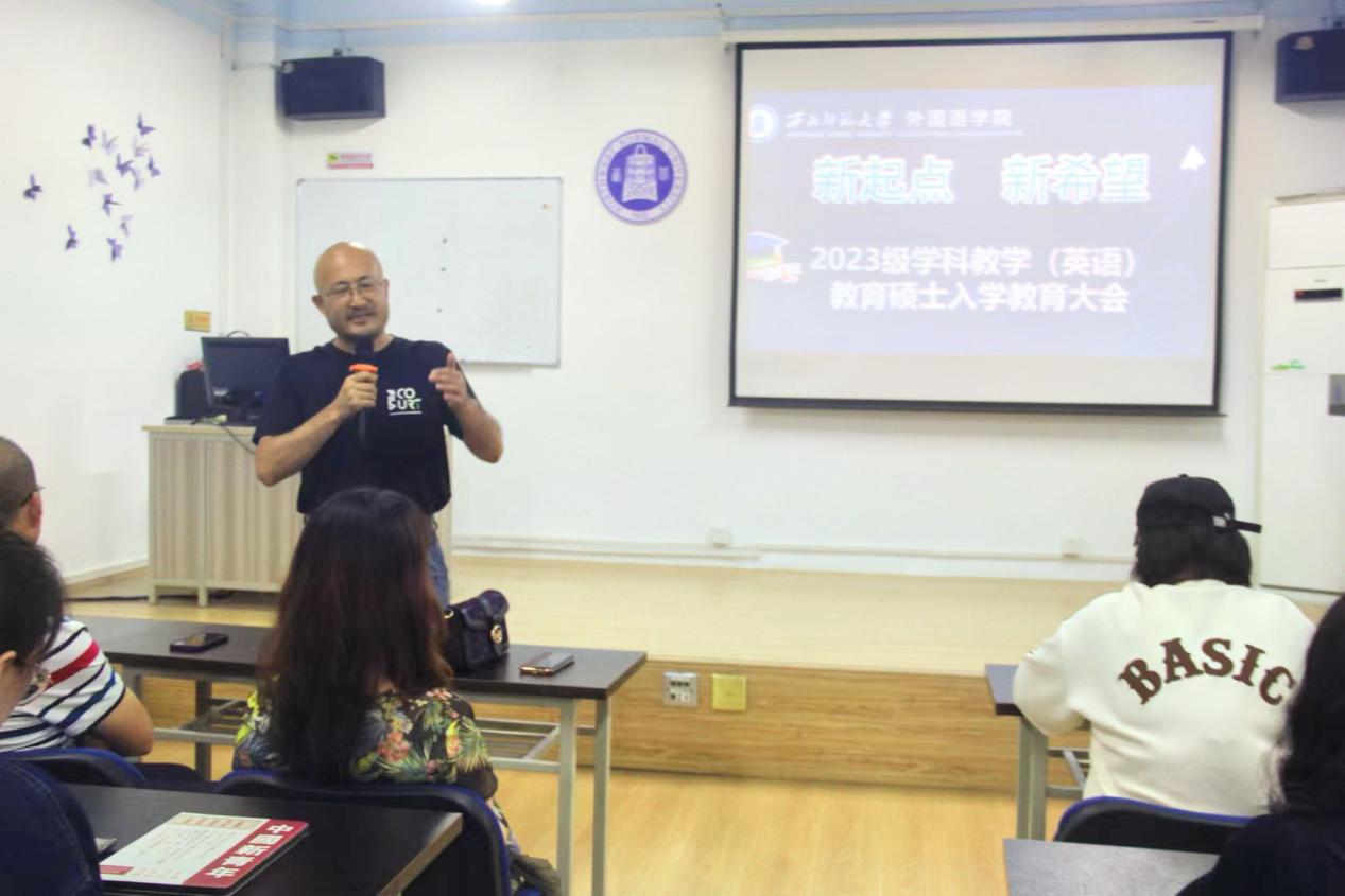第一片秋叶已传来回响,一批新生再次走入大学的殿堂,开始书写生活的新篇章。为让同学们更好地了解本专业培养特色、切实做好三年学习规划,9月8日下午,学院教育硕士培养管理中心在致朴楼806室开展2023级学科教学(英语)教育硕士入学教育活动。学院副院长张宝林教授、中心副主任王飞老师、黄彩霞老师及2023级150余名教育硕士参加。会议由教育硕士培养管理中心主任钟莉婷老师主持。