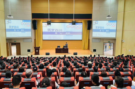 甘肃农业大学教师发展中心张岁玲主任以“筑梦西师,用心启航”为题,梳理了大学生心理适应的重要内容,与在场学生互动练习了心理调适的三个方法,引导大家培育积极的心理品质,赋能幸福大学生活。