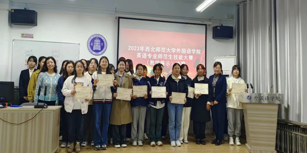 教学展示决赛结束后,外国语副院长李升炜老师和五位评委老师分别为本次师范技能大赛各个奖项的获得者颁发了奖状,祝贺各位选手取得优异成绩。