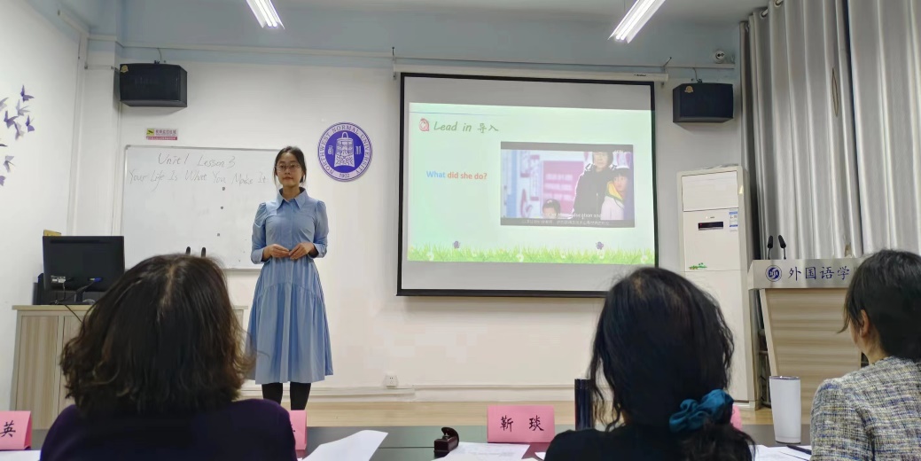 赛后靳琰老师对本次比赛进行点评。她首先肯定了参赛选手的优秀表现,再从教学方法、教学设计、教学目标和过程、以及发音规范等方面为同学们提供建议。