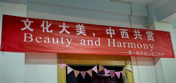 活动首先由主持人引入本次活动的主题“文化大美,中西共赏”。接着,由陈国瑞同学为大家演唱英文歌曲“Shape of you”。随后,主持人介绍本次活动的三个模块——中西方的节日、饮食、文化,并再次引入主题,组织全体同学分小组与嘉宾进行讨论,整个英语角沉浸在和谐且活跃的气氛里。最后,主持人邀请各位嘉宾对本次活动做出总结,以大家在横幅上签名圆满结束了这次活动。