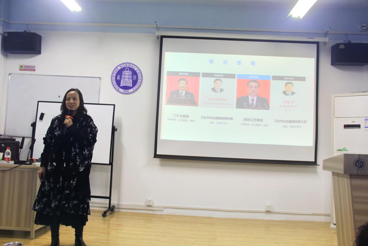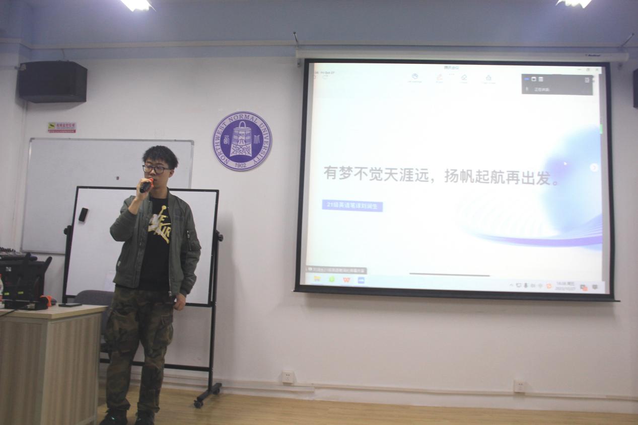 会议伊始,五位翻译硕士分别向大家介绍了自己的专业实践经历和考试经验。2021级英语笔译方向硕士刘润生鼓励大家通过参加志愿活动提高自身的英语水平,丰富自己的实践经历。2021级英语口译方向硕士何谨通过讲述自身实践经历,强调了翻译实践与练习的重要性。2021级口译方向硕士符乃文从专业竞赛、学术讲座及专业实习三个方面展开分享,强调了目标与行动的重要性。2021级英语口译方向硕士程应丹鼓励大家积极参加各种比赛,并尽早准备毕业论文,杜绝拖延。2021级翻译硕士杨瑾结合他目前所在的工作岗位中的工作内容与经历,向大家介绍了各种翻译工具与软件。