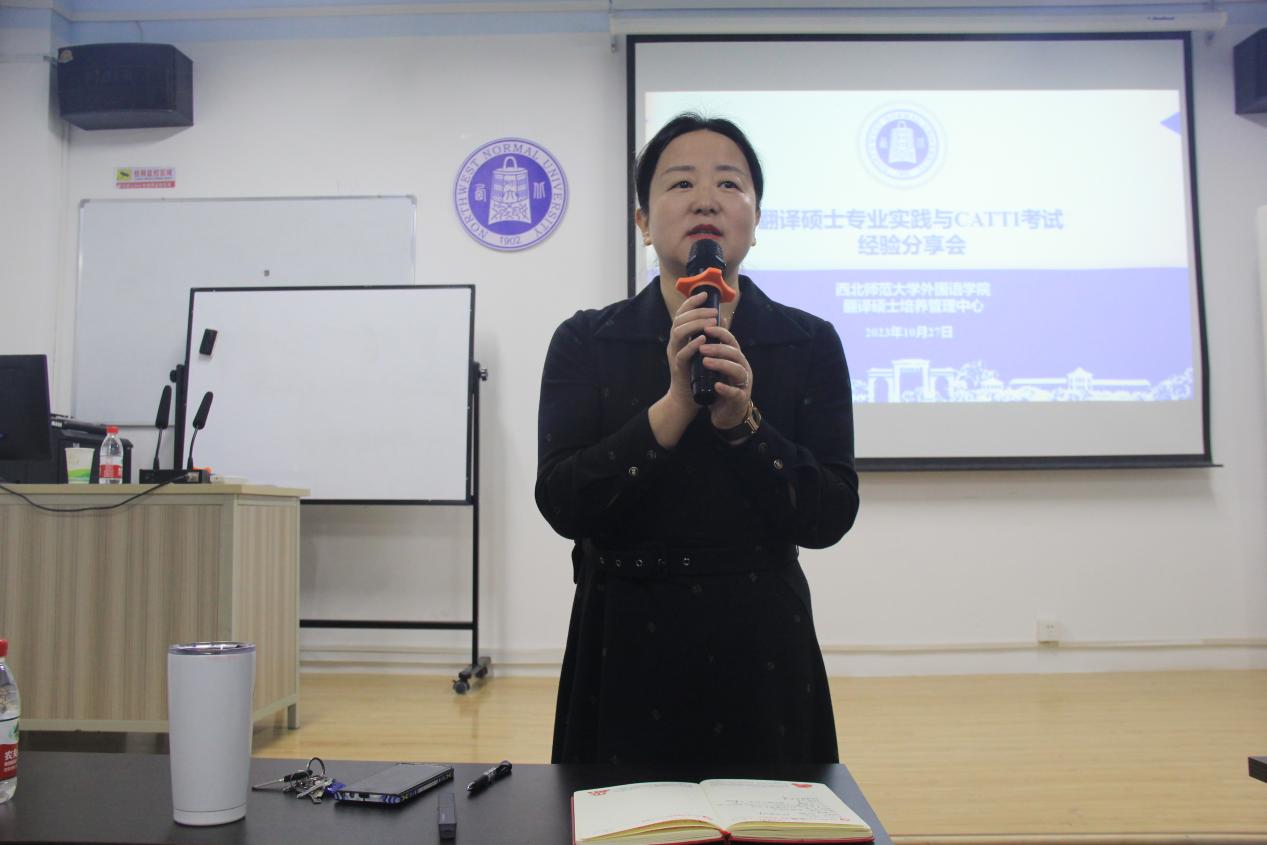 会议最后,MTI培养管理中心主任白丽梅教授做总结发言。白丽梅老师高度赞扬了五位同学的杰出表现,并鼓励同学们虚心向他们学习,并向他们请教就业的经验。