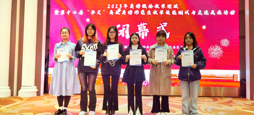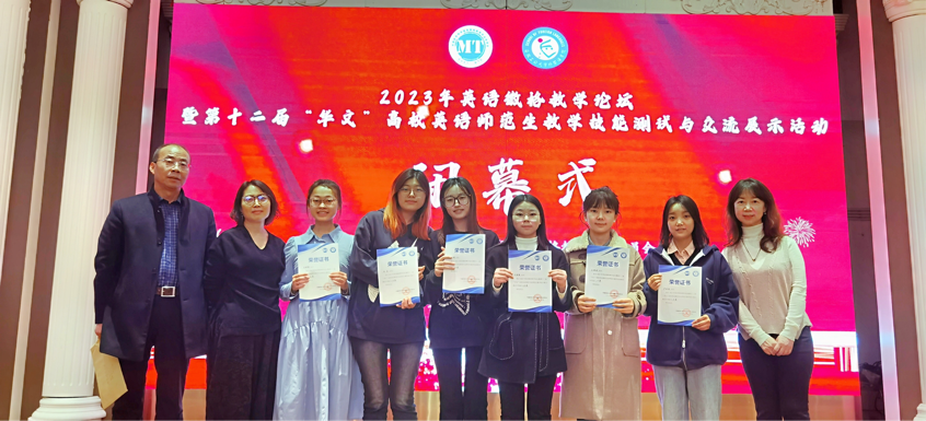 2023年11月24日至27日,由中国教育技术协会微格教学专业委员会主办、安徽工业大学承办的2023年英语微格教学论坛暨第十二届“华文”高校英语师范生教学技能测试与交流展示活动在安徽省马鞍山市顺利举行。来自华中师范大学、四川师范大学、西北师范大学等全国40余所高校的321名选手报名参赛。我院学科教学(英语)专业的研究生和英语专业本科生共6名同学,在教育硕士培养管理中心和英语系相关老师的组织和悉心指导下,以精妙的教学设计、精美的课件、生动的语言、优秀的课堂呈现在比赛中脱颖而出,取得了优异成绩。在教学设计测试中,英语专业本科生严新晴、周荣荣获二等奖,学科教学(英语)专业研究生马丽洁、李丹、胡入月和英语专业本科生王妙影荣获三等奖。在教学技能测试中,学科教学(英语)专业研究生马丽洁、英语专业本科生严新晴荣获二等奖,学科教学(英语)专业研究生李丹、胡入月和英语专业本科生王妙影荣获三等奖。