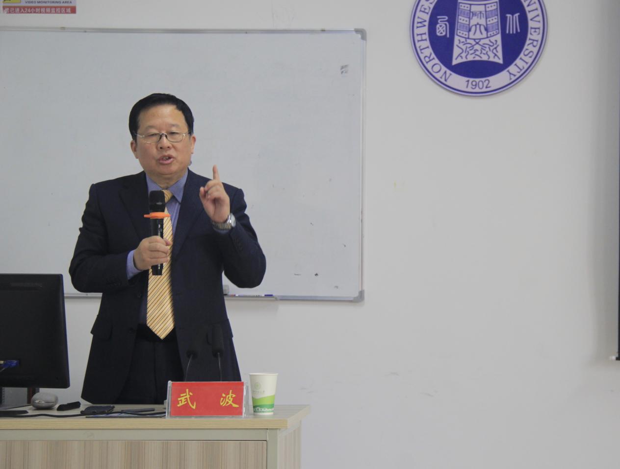 武波教授引经据典,阐明了中国古典文化的特征与核心,指出中西方文化的差异在于西方是“神远立彼岸”,中国是“圣近居此岸”;西方文明人神各异,中华文明天人合一。武教授提出,翻译正处于从中国“翻译世界”转向世界“翻译中国”的新阶段,而中国文化的对外传播模式也从原来的“宣传”和“传播”,逐渐向“投射”靠拢。因此,中国译者需秉持一种“以我为主”的翻译观,要不仅要关注语言,更要关注中国文化。武教授解答了同学们的问题,并强调了国学的重要性。