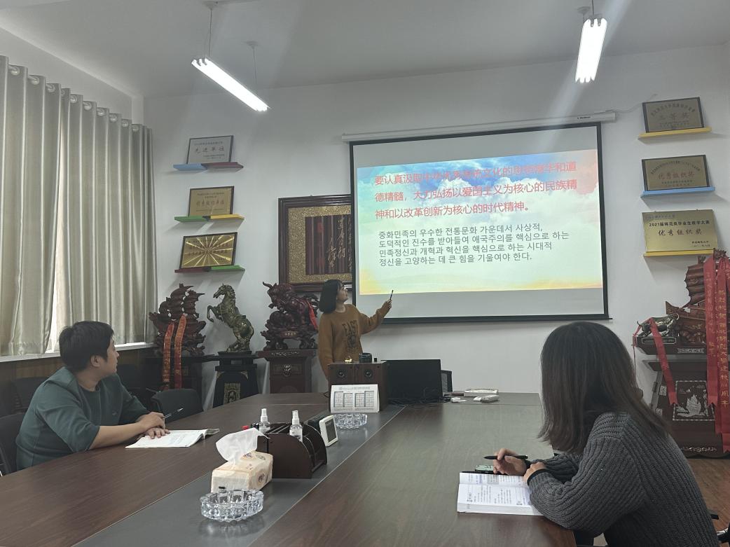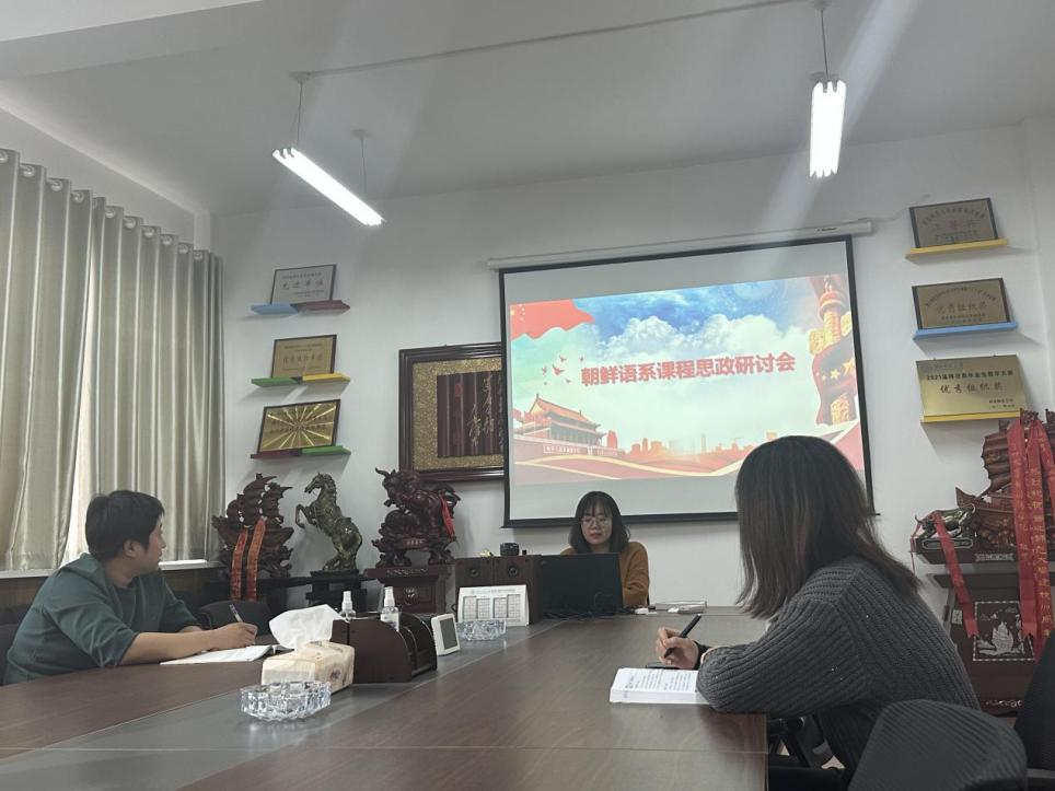 首先,朝鲜语系于11月4日开展了“初心树人”系列课程思政主题活动启动会。系主任董宵朦介绍了活动的主要目标,朝鲜语系全体教师讨论并制定了活动计划,活动主要分为两部分,教师互相观摩课堂与思政素材分享。