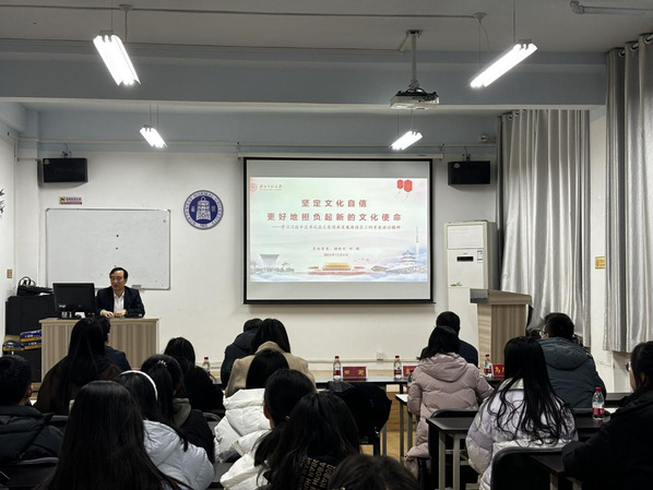 会上,田澍副校长为同学们做了《坚定文化自信更好地担负起新的文化使命—学习习近平总书记在文化传承发展座谈会上的重要讲话精神》的辅导报告,针对同学们的问题进行了耐心解答。他希望同学们能够保持良好的身心健康,在大学四年中养成规律的生活习惯,加强自我管理,积极参加体育运动和各类社团活动,多和同学们交流,以阳光心态面对学习生活。同时,他勉励同学们增强专业自信,胸怀报国之志,练就过硬本领,努力成长为有理想、敢担当、能吃苦、肯奋斗的时代新人。