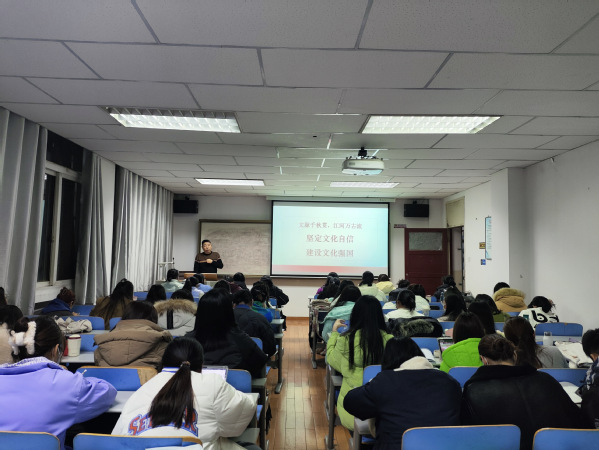 王景为同学们讲解了习近平文化思想的理论渊源、形成过程与实践要求,结合学生的学习特点和未来的职业规划,鼓励同学们坚持用理论武装头脑,做到学思用贯通、知信行统一,坚定文化自信,增强文化自觉,争做新时代文化建设的“先行者”。