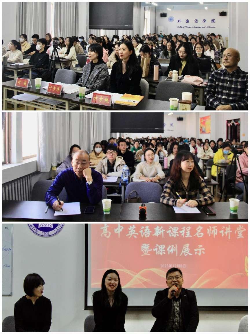 2023年12月8日下午,兰州新舟中学金城名师工作室负责人司筱、工作室核心成员叶彦萍、方素媛等三位老师应学院邀请,在致朴楼806室开展高中英语新课程名师讲堂暨课例展示活动。150余名学科教学(英语)研究生现场参会,近300名研究生及英语专业本科生云端参会。本次活动由教育硕士中心主任钟莉婷副教授主持,张宝林副院长出席活动并致欢迎辞。